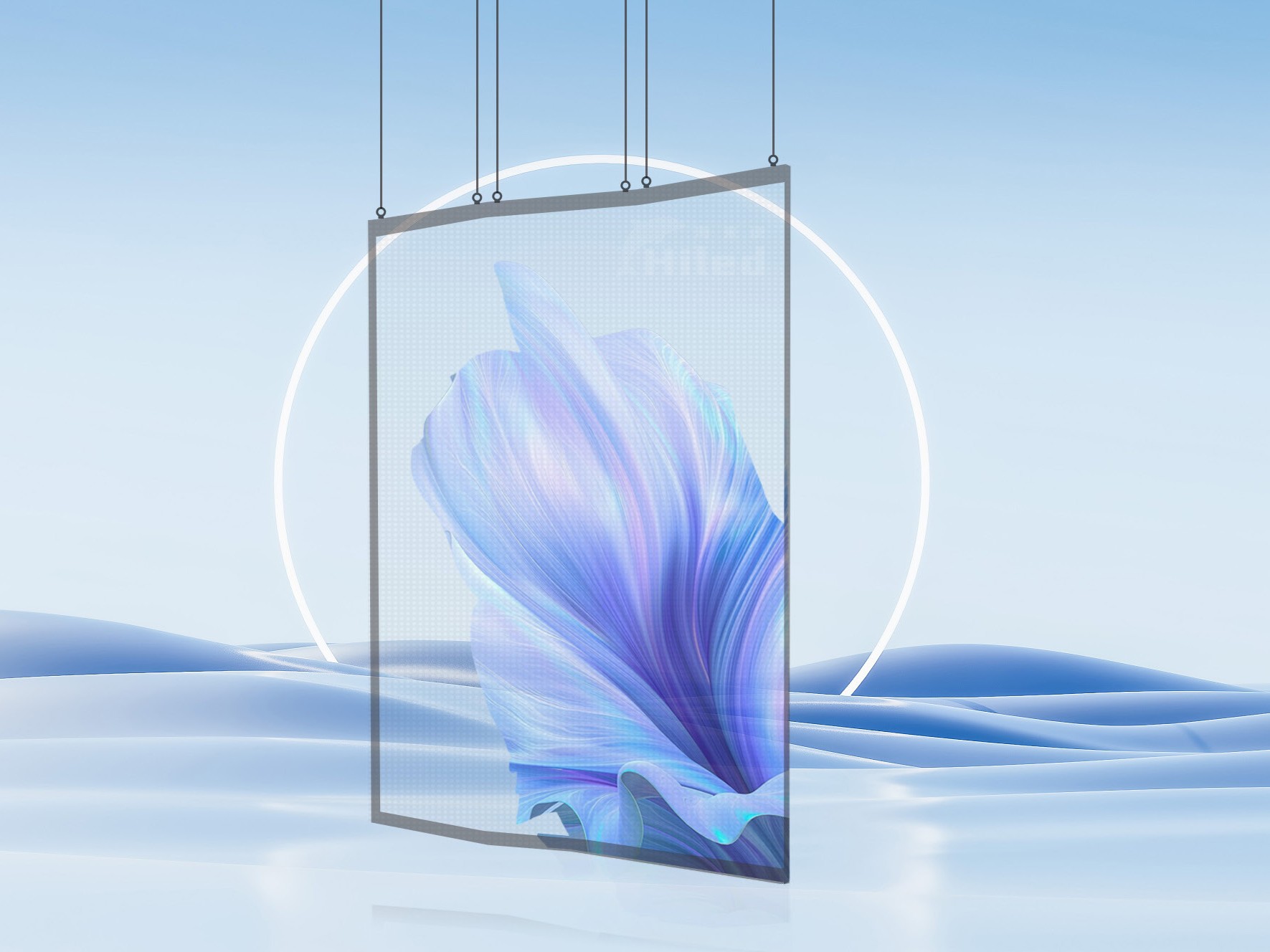 吊装全息透明片采用极简箱体与灯驱分离技术,驱动芯片外置均匀分布,散热性能优异,有效降低运行温度,避免亮度衰减和色彩偏差。轻量化结构减少吊装负担,安装便捷高效,维护简单快速。高透光材质确保画面通透亮丽,适合舞台、展厅、橱窗等需要悬挂展示的高端场景。